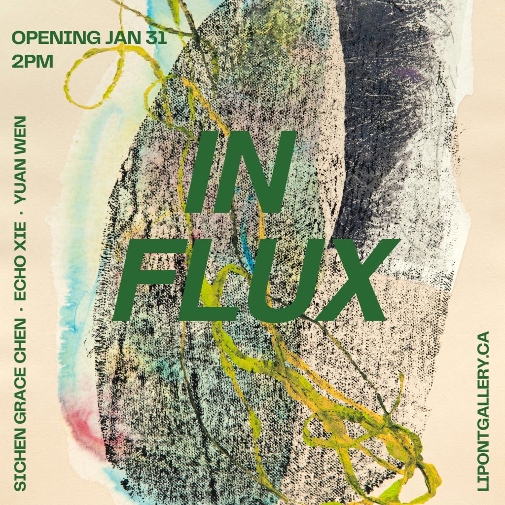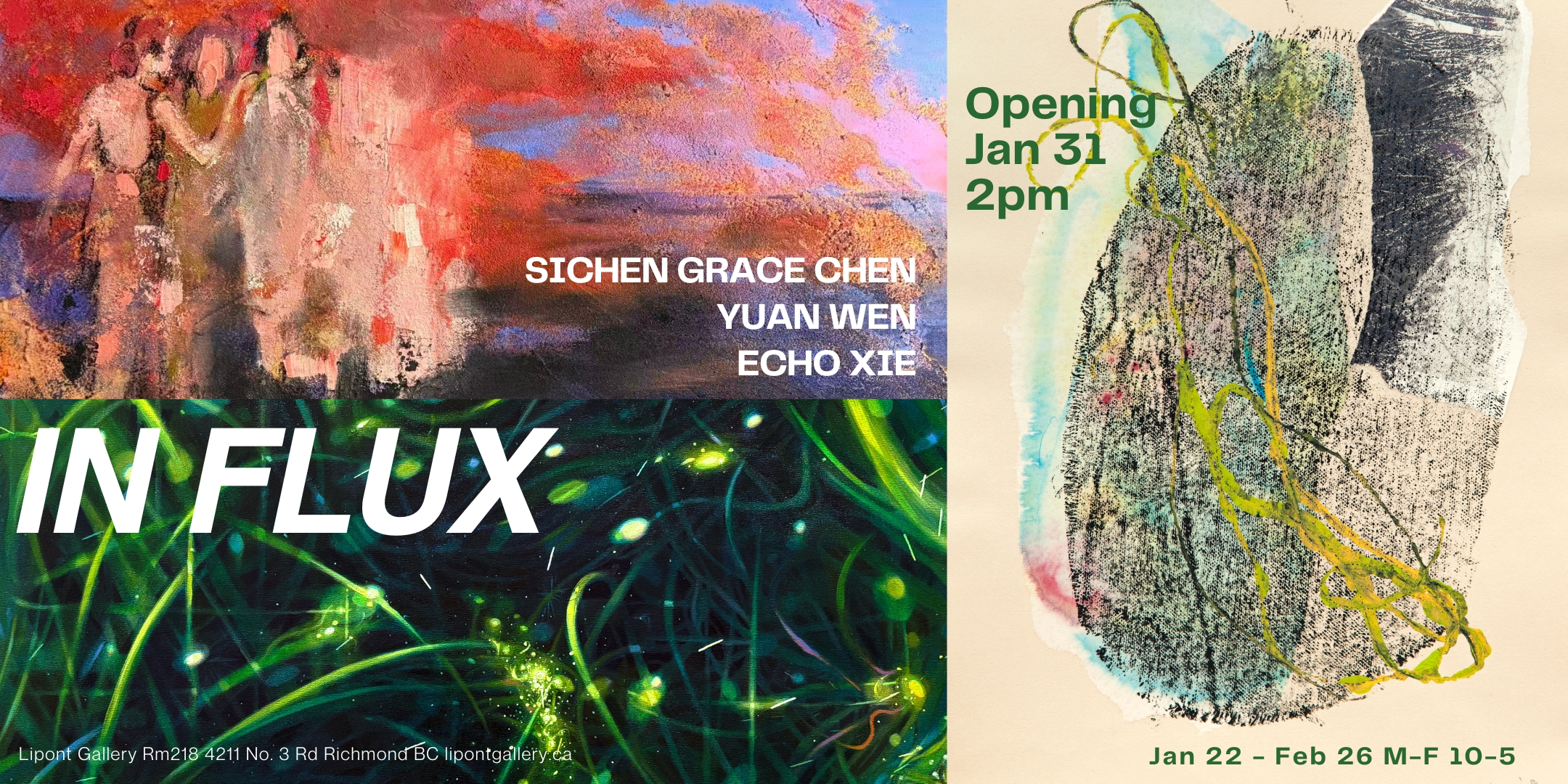Lipont Gallery presents In Flux: Rhythms of Life, a compelling group exhibition featuring the works of Vancouver-based artists Sichen Grace Chen, Yuan Wen, and Echo Xie. Running from January 22 to February 26, 2026, the exhibition invites the public to explore the fluid boundaries between the internal psyche, material agency, and the natural world.