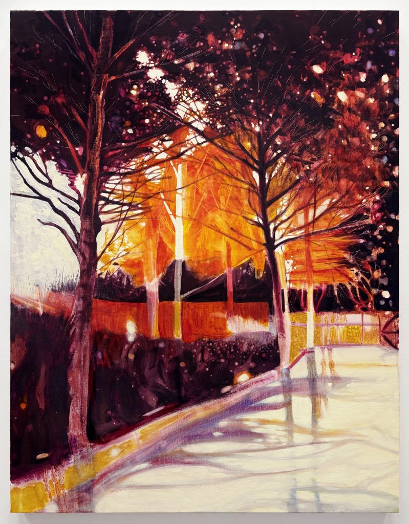 Through additive and subtractive methods of painting, such as dry-brushing, glazing, and wiping with rags, I instill a sense of deep time and ephemerality. I begin with underpaintings in watercolour, introducing randomness and microbial and dreamlike patterns. Afterward, I paint using oils and acrylics to enhance the movement of the water, producing compositions that feel fluid and suspended in time and space. Pareidolia, a phenomenon in which the mind perceives meaningful patterns or images in random stimuli, is one way I untangle truth and present my unconscious memories in their most authentic forms. Through the act of painting, I process personal histories and interpersonal relationships, weaving together fragmented objects and spaces that speak to alchemy, mending, and rupture. My paintings capture the complex and symbiotic interplay between artist, material, and studio, paralleling the mechanisms of an ecosystem and serving as a respite from solastalgia— the grief one feels when one’s home environment is lost.