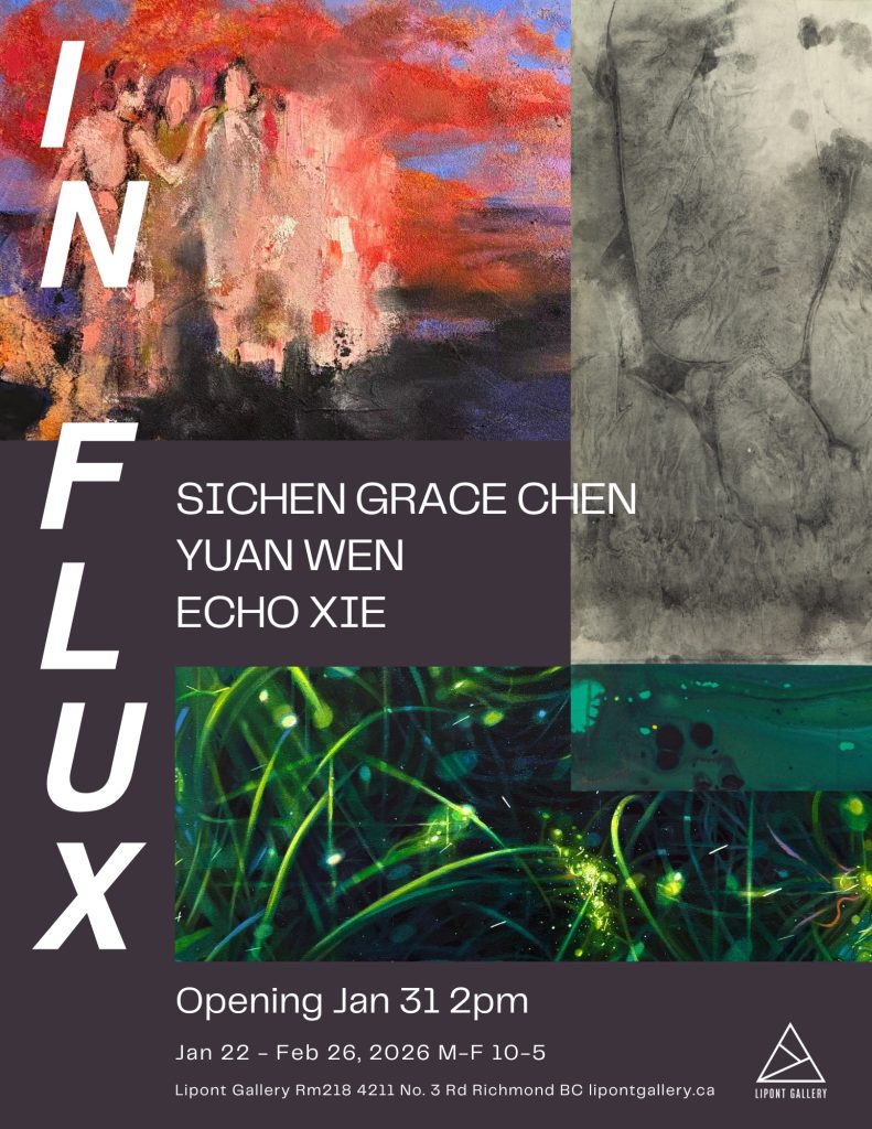 温哥华力邦美术馆 (Lipont Gallery) 荣幸举办现居加拿大兰里及温哥华的艺术家陈思辰(Sichen Grace Chen,艺名“SG”) 的个人绘画作品展【双栖 – 自我与空间的回归: 陈思辰绘画展】(AMPHIBIOUS – A Return to Self and Place – Paintings by Sichen Grace Chen)。陈探索人类、超人类以及科技领域之间的互联互通,聚焦于记忆与情感共鸣的空间。