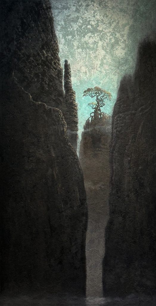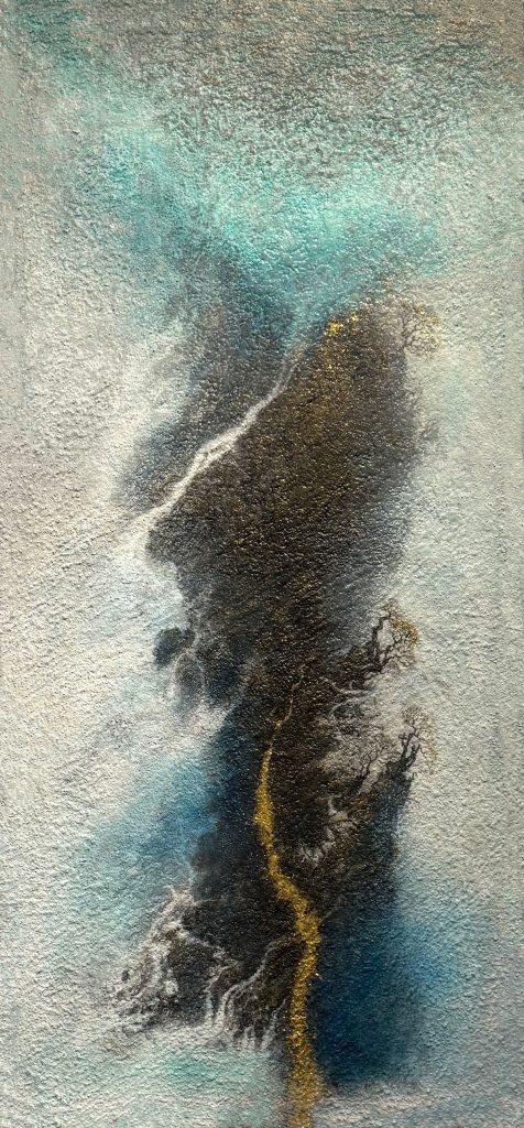 In the process of creation, I employ Western painting techniques and materials—including oil paint, contemporary mixed media, layered surfaces, and textural treatments—to express the spatial rhythm and flowing energy inherent in the spirit of Eastern landscape painting. Through layered color and surface textures, I hope the paintings convey a quiet yet profound inner force, where the tremors of nature, the sediment of time, and the resilience of life gradually emerge.